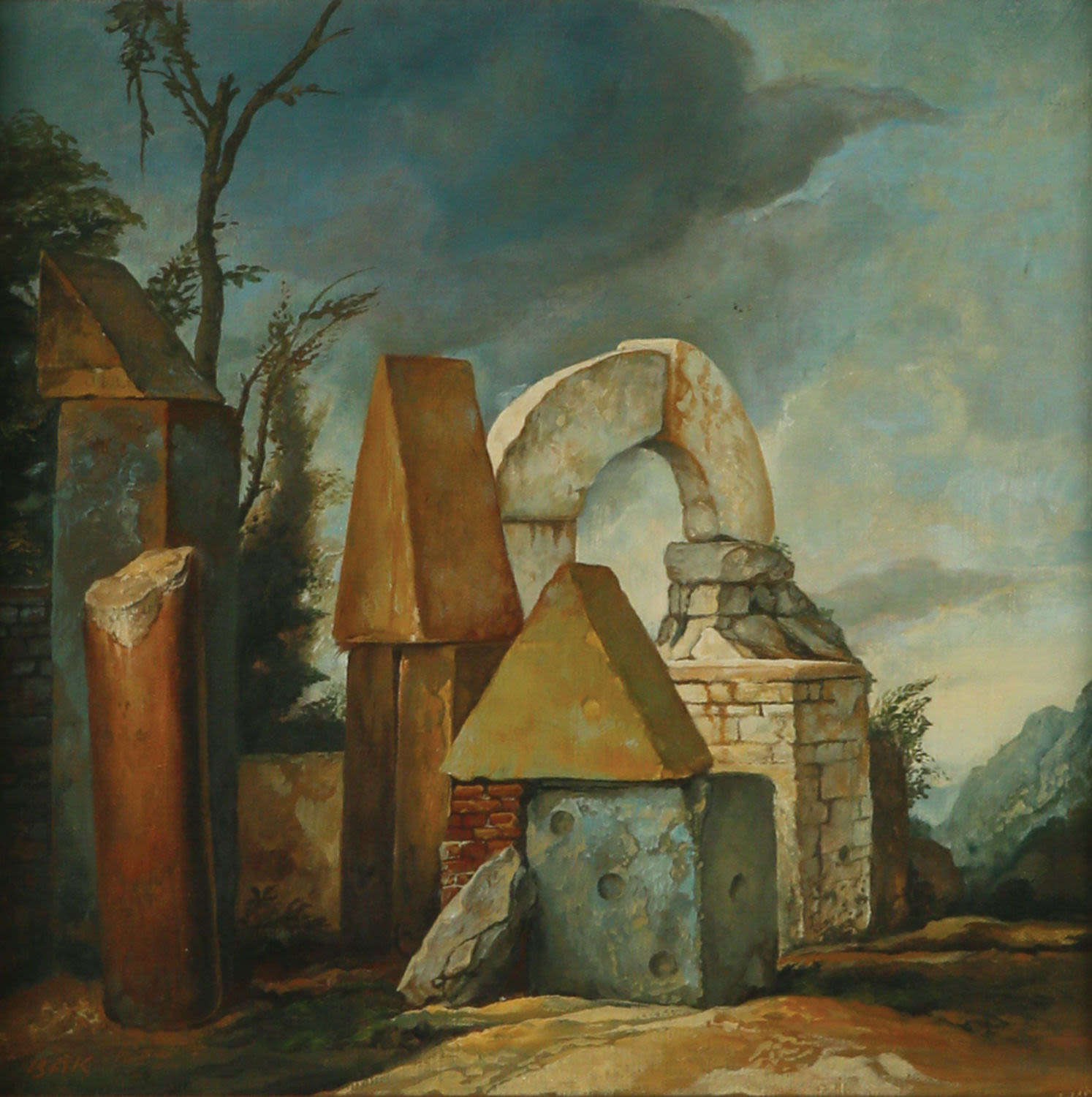 אבנים, שמן על בד, 24×24 ס"מ, חתום.