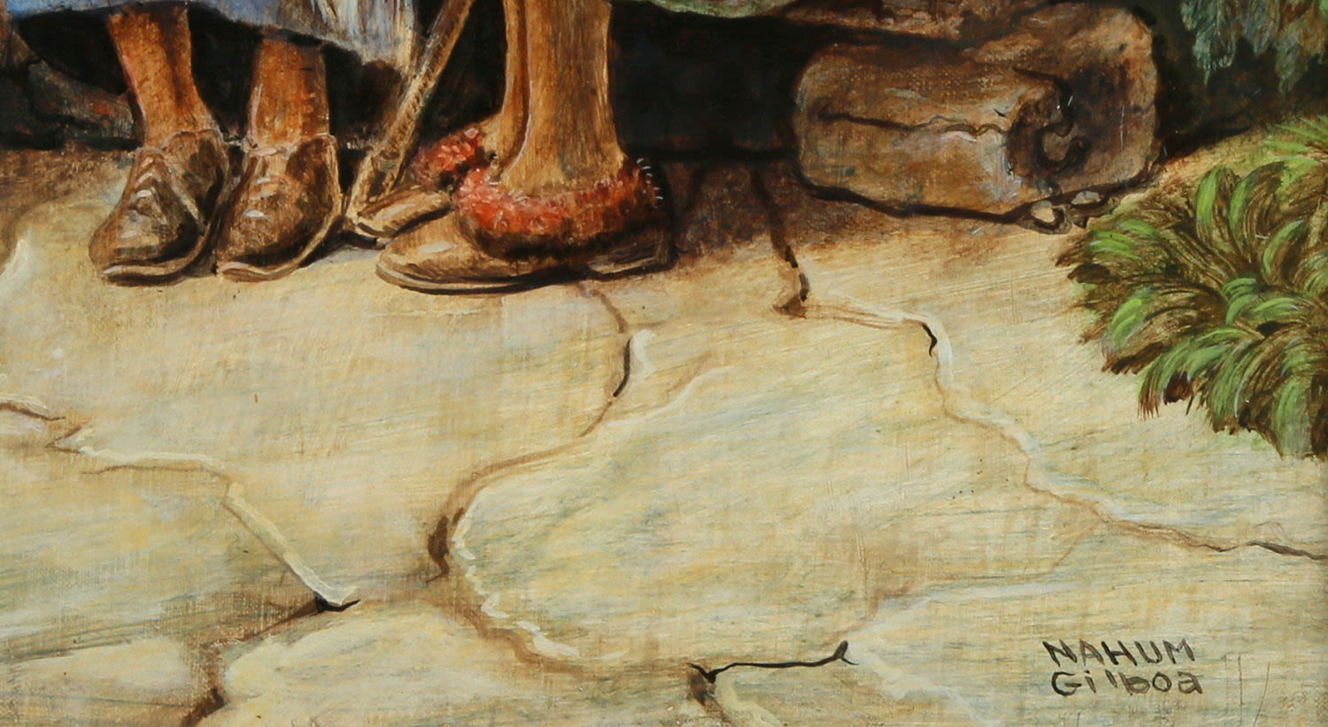 דמויות בירושלים, טמפרה על בד, 60×50 ס"מ, חתום.
