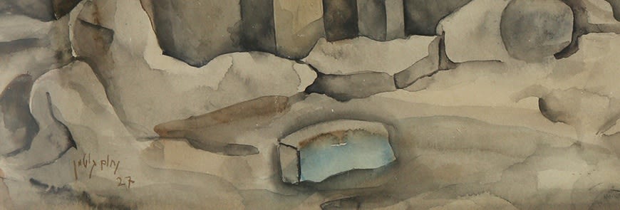 ארכיאולוגיה, 1927 , אקוורל על נייר, 30×40 ס"מ, חתום ומתוארך. מקוריות הציור אושרה ע"י פרופסור חמי גוטמן, בן האמן.