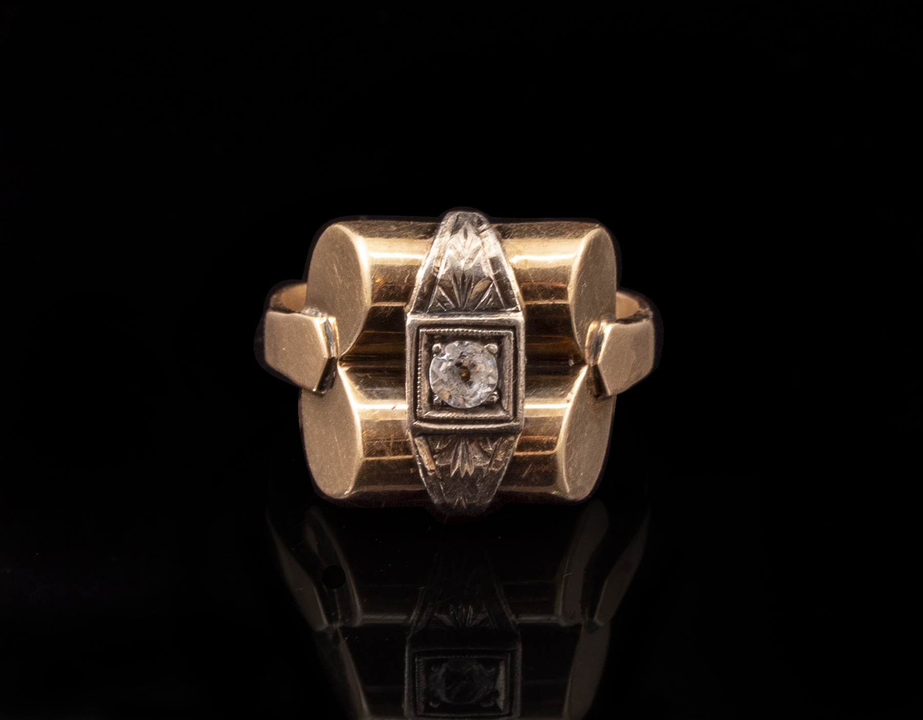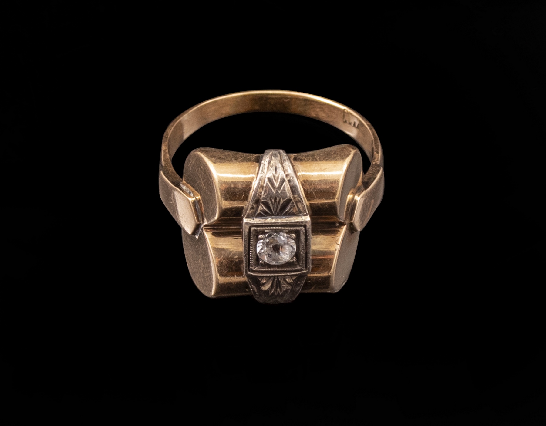 טבעת זהב 14K משובצת יהלום מרכזי בחיתוך אלט-שליף במשקל כ-15 נק’. מידה: 9 US, משקל: 5 גרם. חתומה.