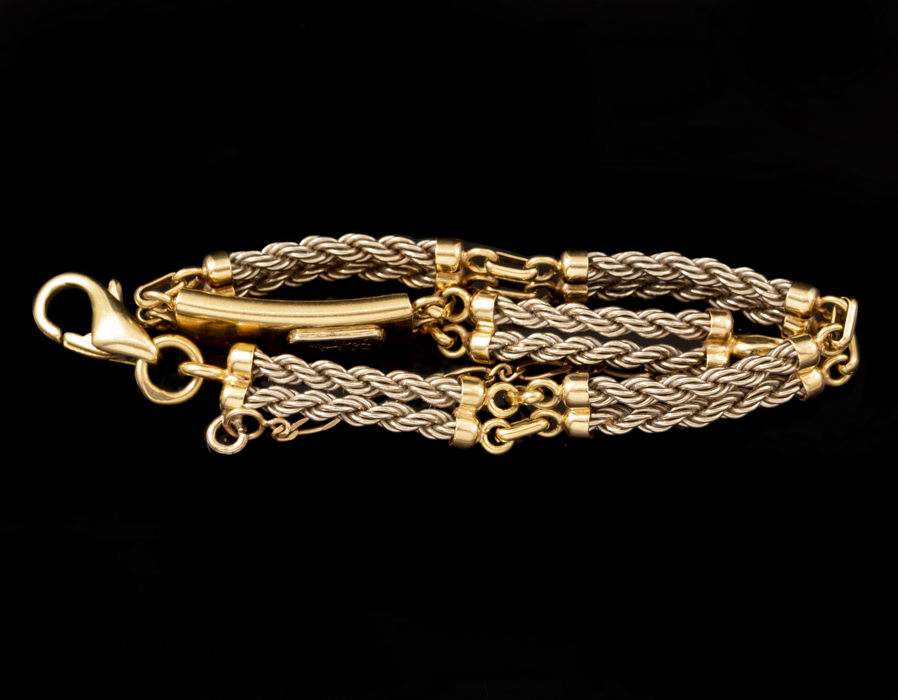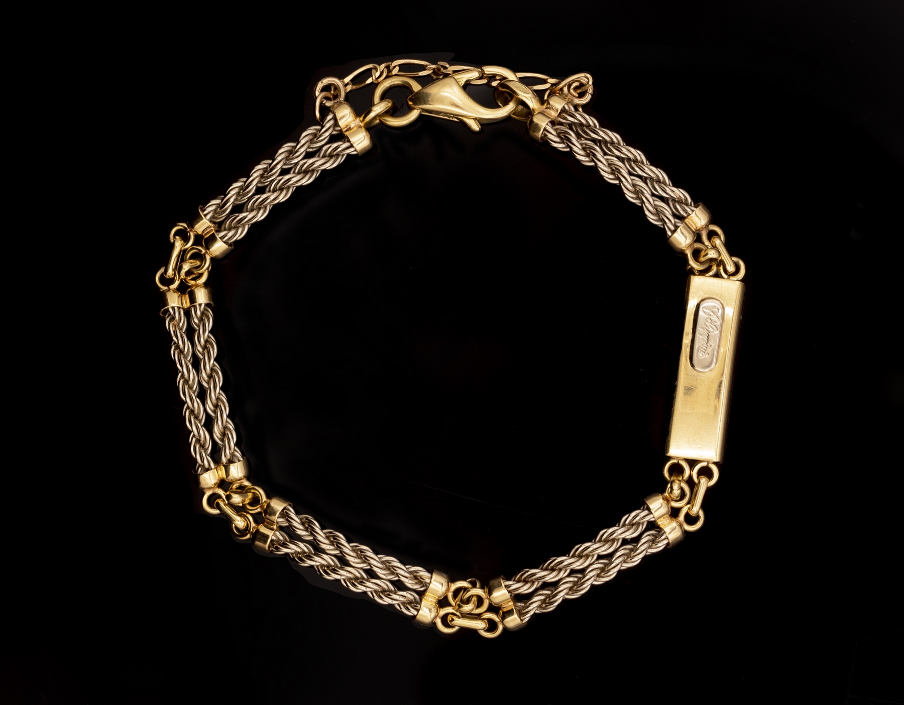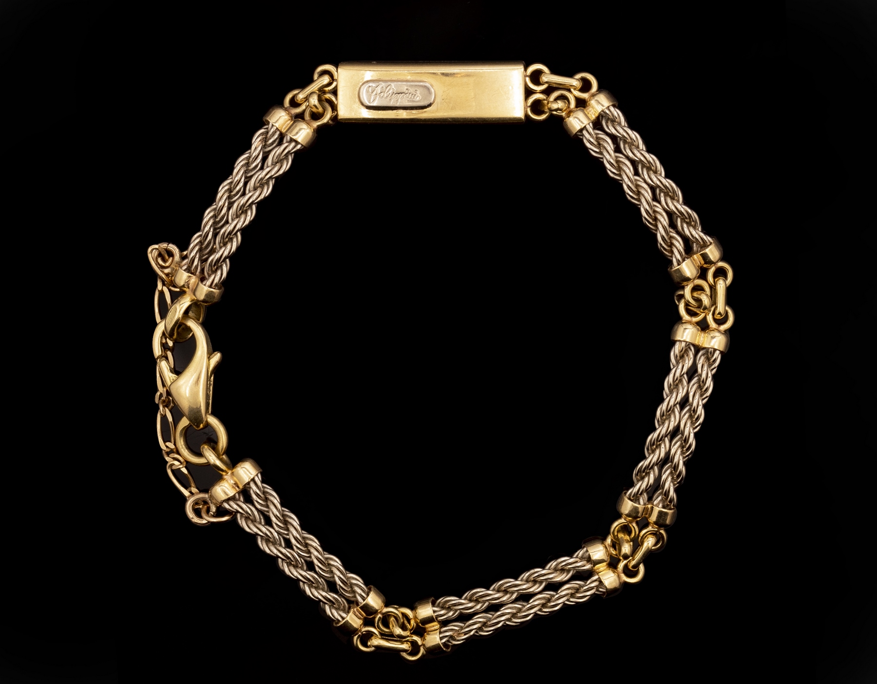 צמיד זהב 18K בשני גוונים, תוצרת Filippini Fratelli. אורך: 18 ס”מ. משקל: 15.4 גרם. חתום.