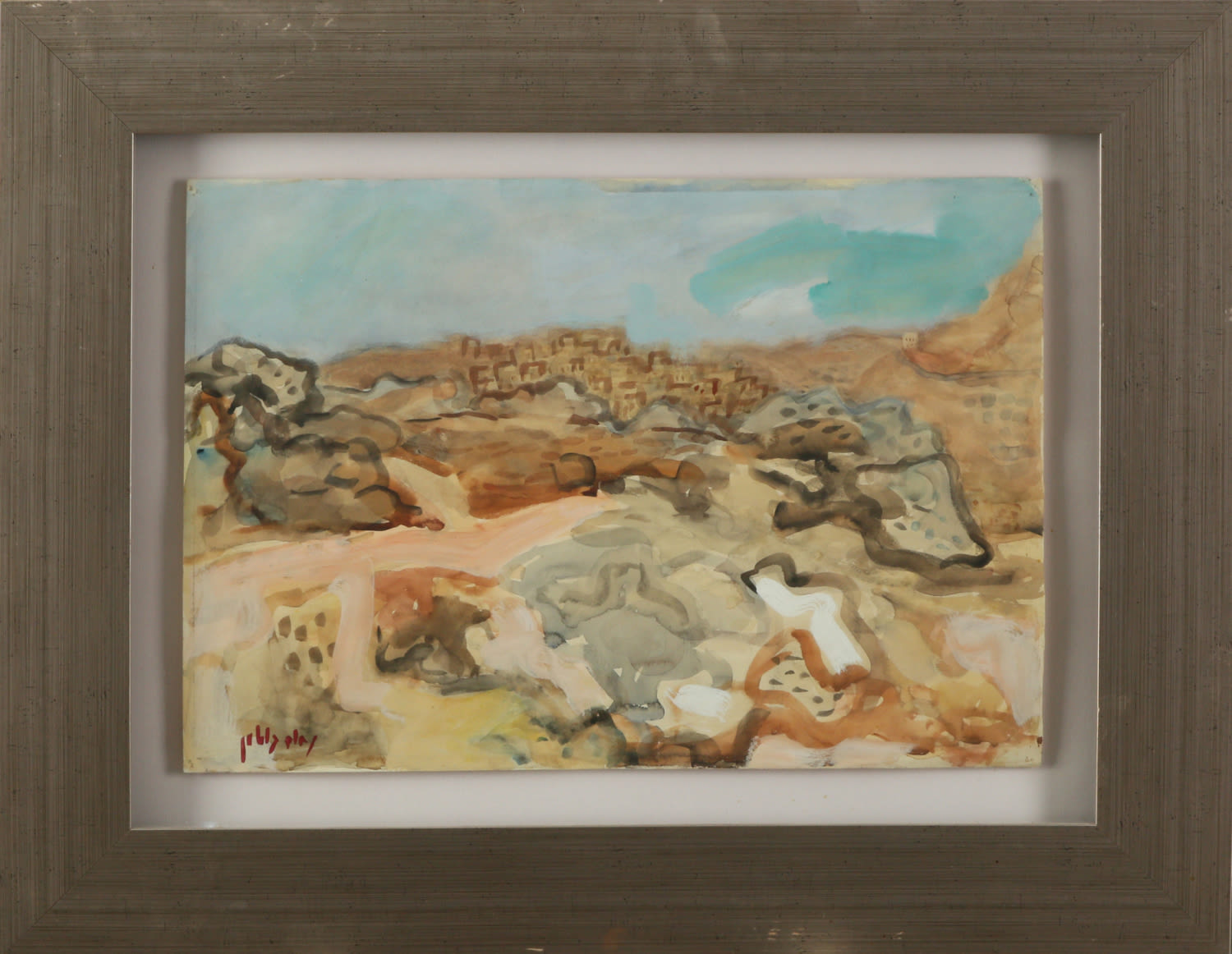 נוף, אקוורל על נייר, 35×50 ס"מ, חתום. מקוריות הציור אושרה ע"י פרופסור חמי גוטמן, בן האמן.
