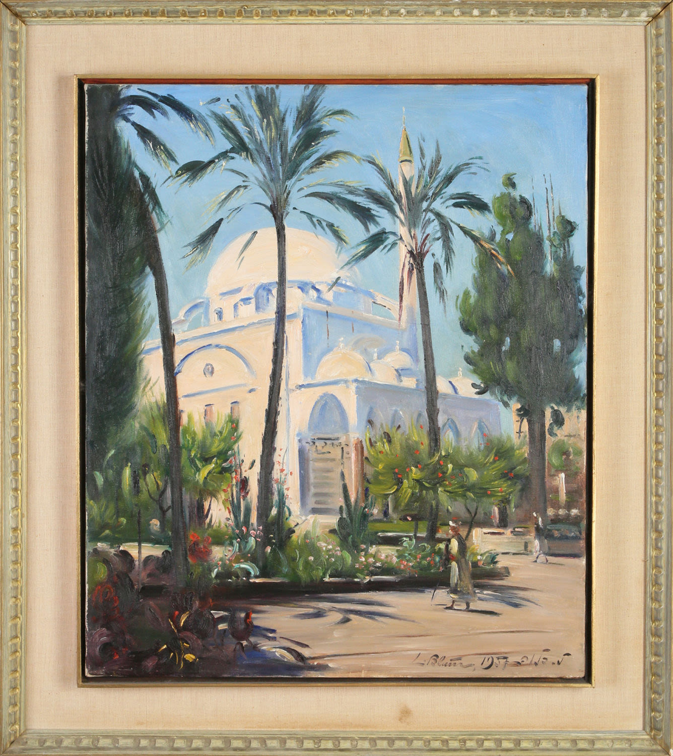 המסגד הלבן, עכו, 1957 , שמן על בד, 61×50 ס"מ, חתום, מתוארך ומתואר. מקוריות הציור אושרה ע"י גב׳ מירה חן, נכדת האמן.