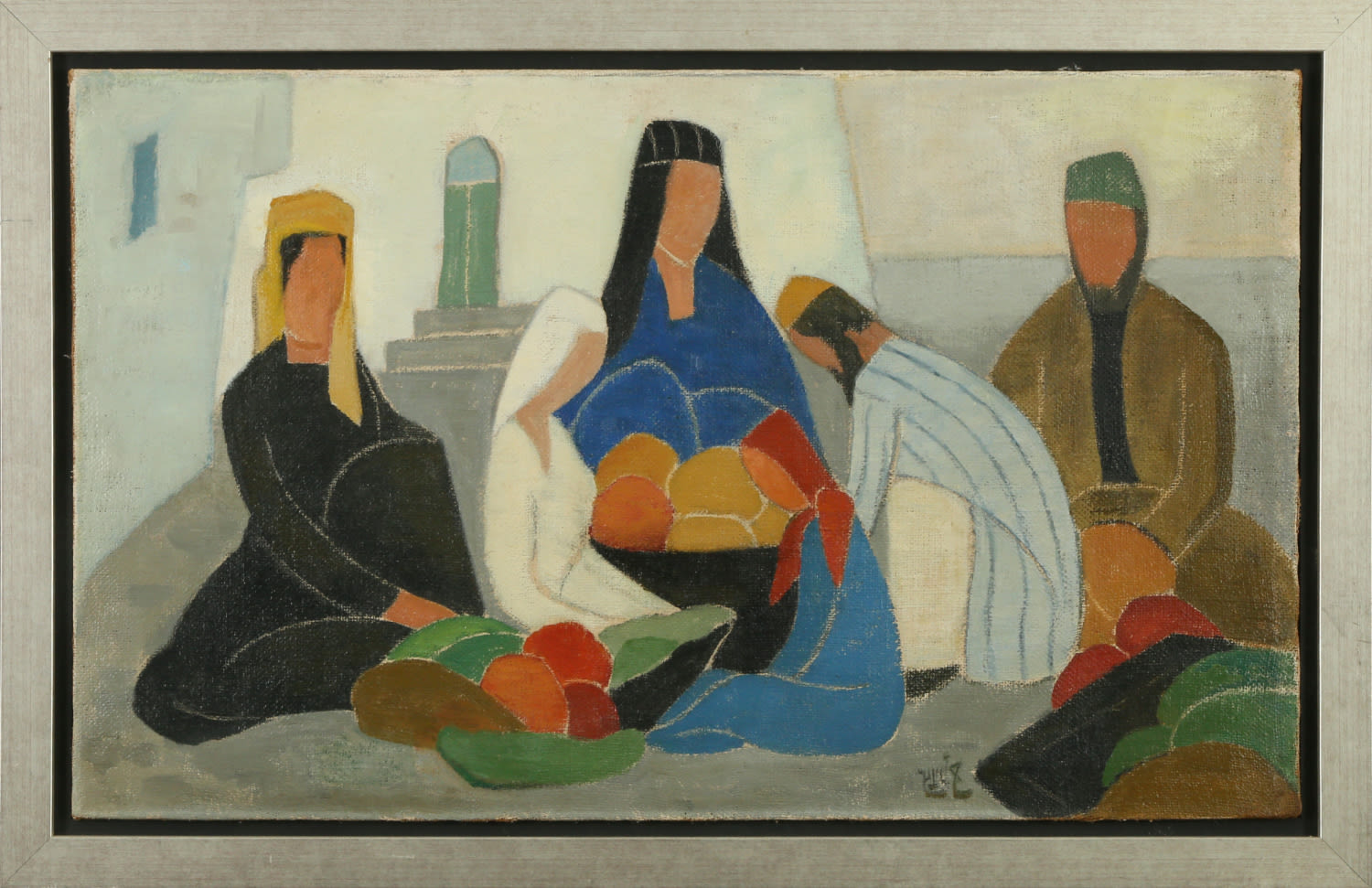 משפחה, שמן על בד, 55×93 ס"מ, חתום.