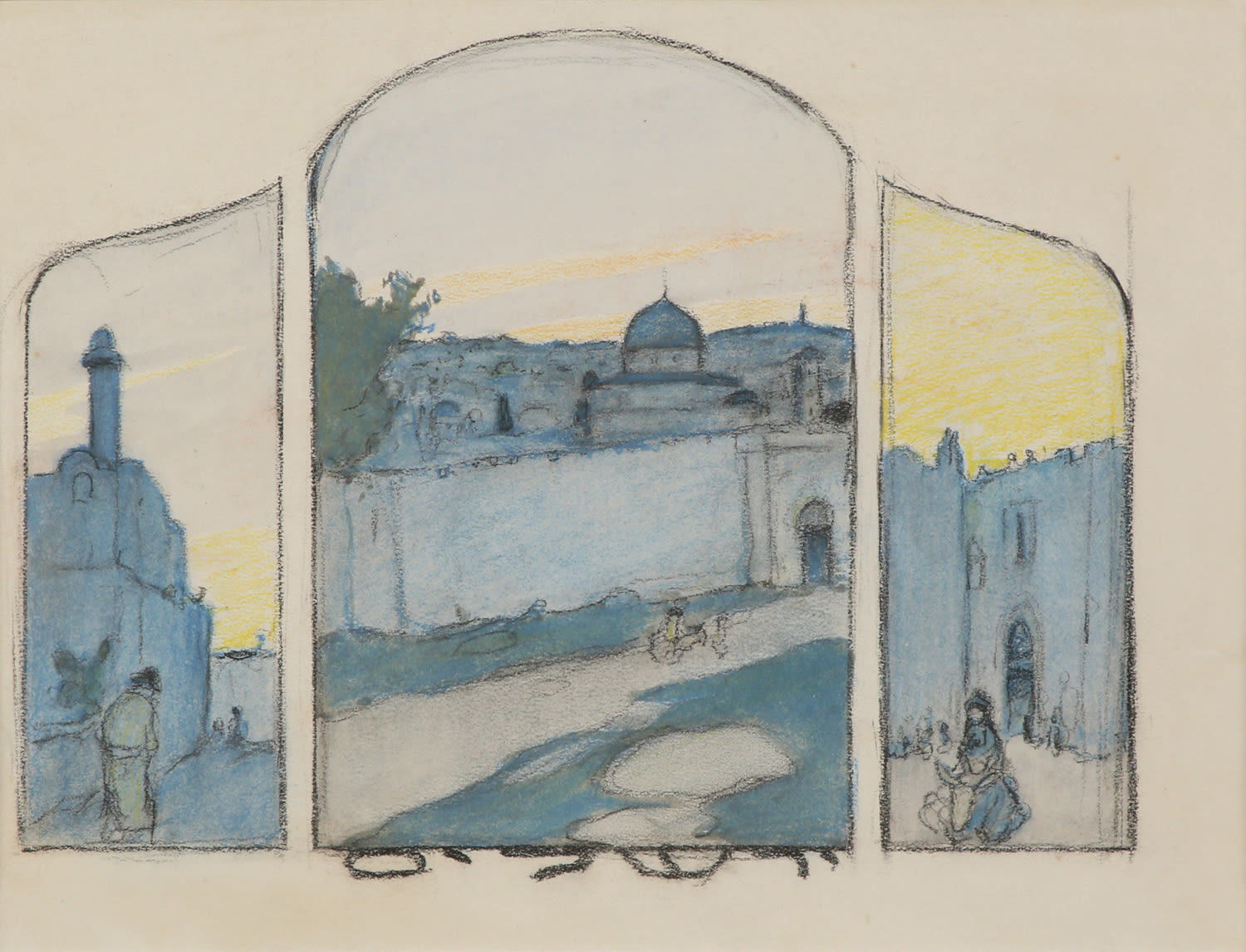 ירושלים, פסטל על נייר, 31×41 ס"מ, חתום מאחור.