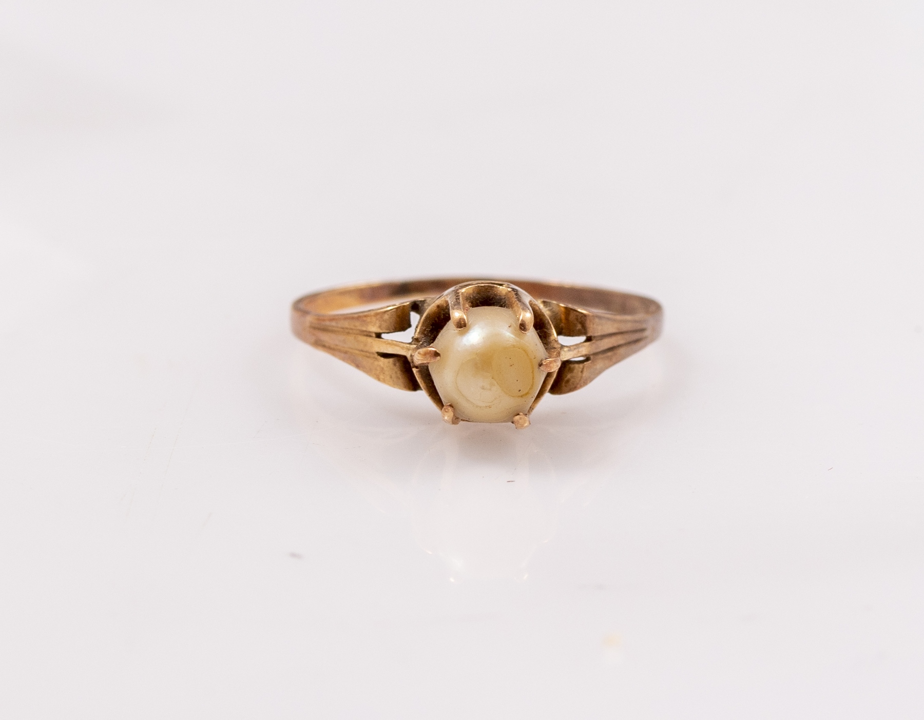 מקבץ תכשיטי זהב 14 קראט משובצים פנינים ואבן חן, משקל כולל: 7.4 גרם. חלק חתומים, זהב נבדק.