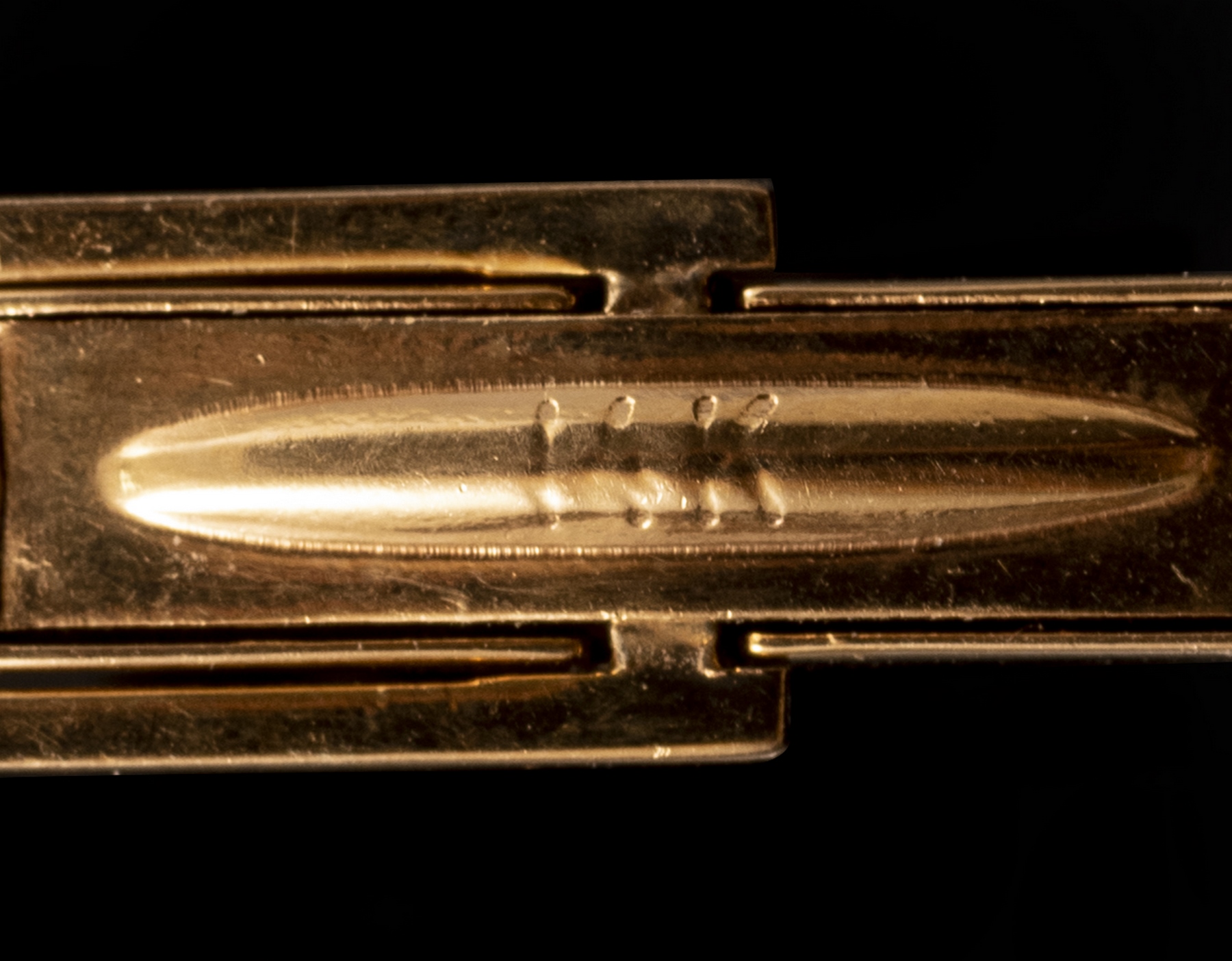 זוג חפתים מזהב 14K. בצורת חבל. מידות: 24X10 מ”מ. משקל: 13 גרם. חתומים. נקנו בחנות טיפאני.