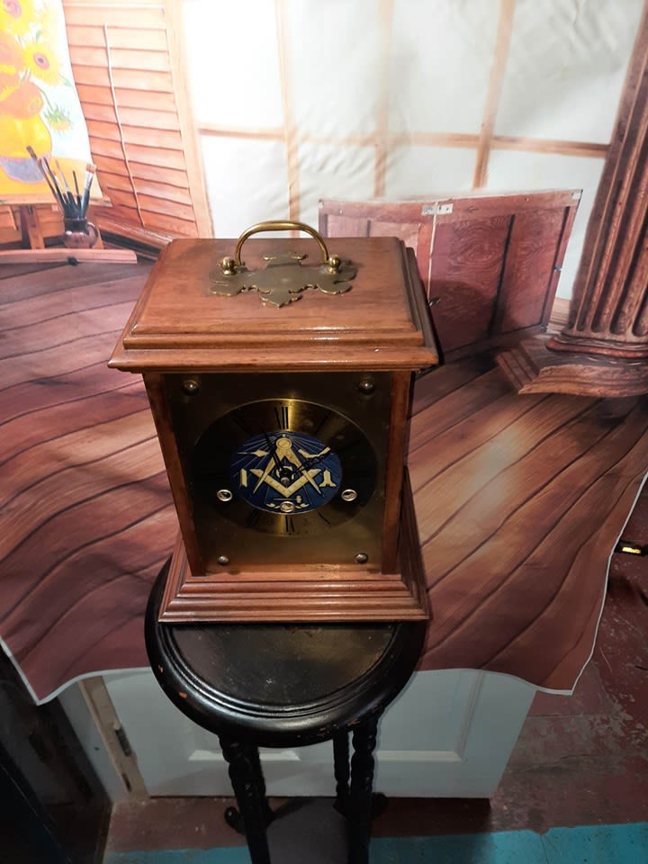 Vintage Masonic Brass Faced Mantle Clock - Perivale Clock Co