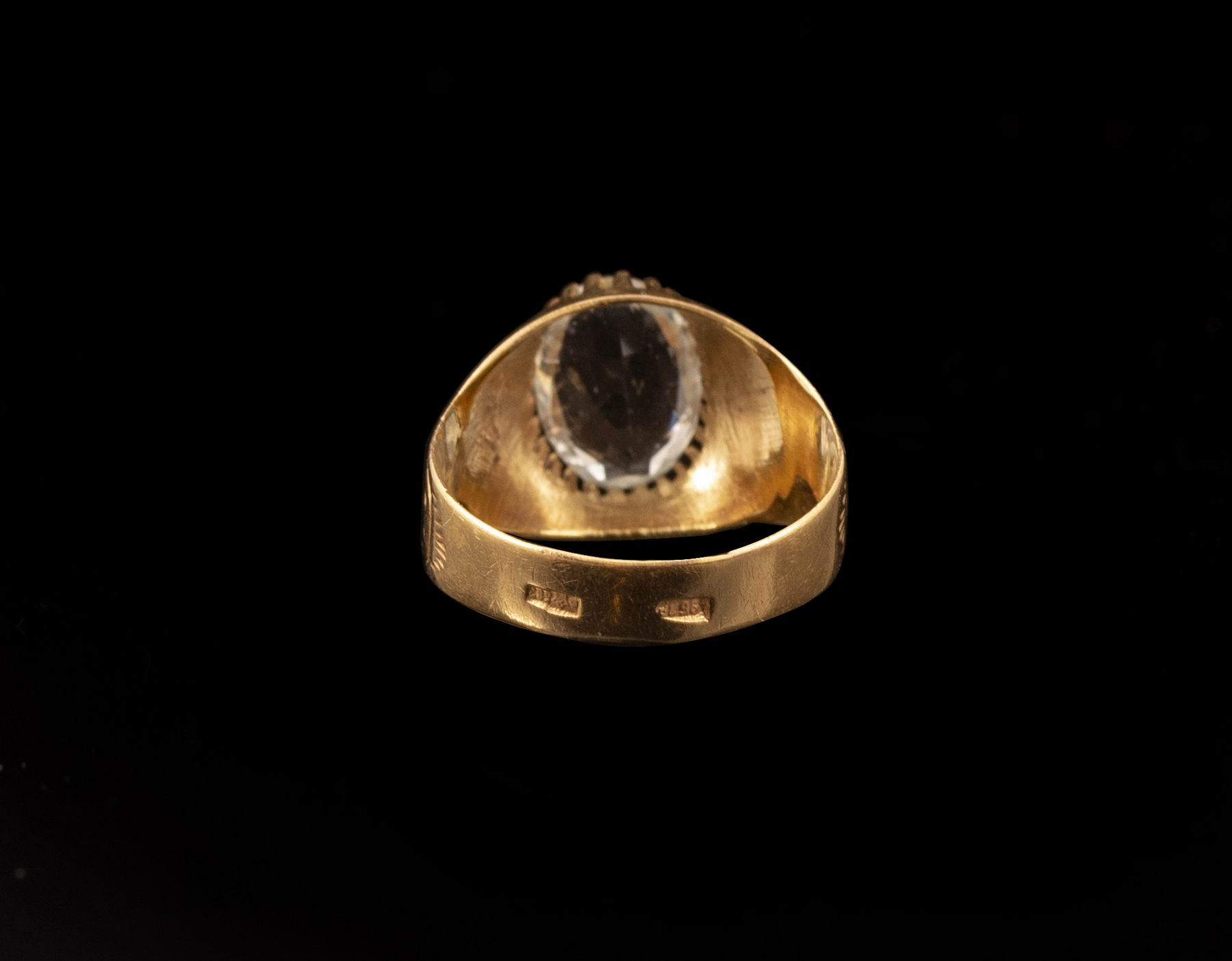 טבעת זהב 14K רוסית, משובצת אבן בצבע תכלת. מידה: 7 US, משקל: 3 גרם. חתומה.