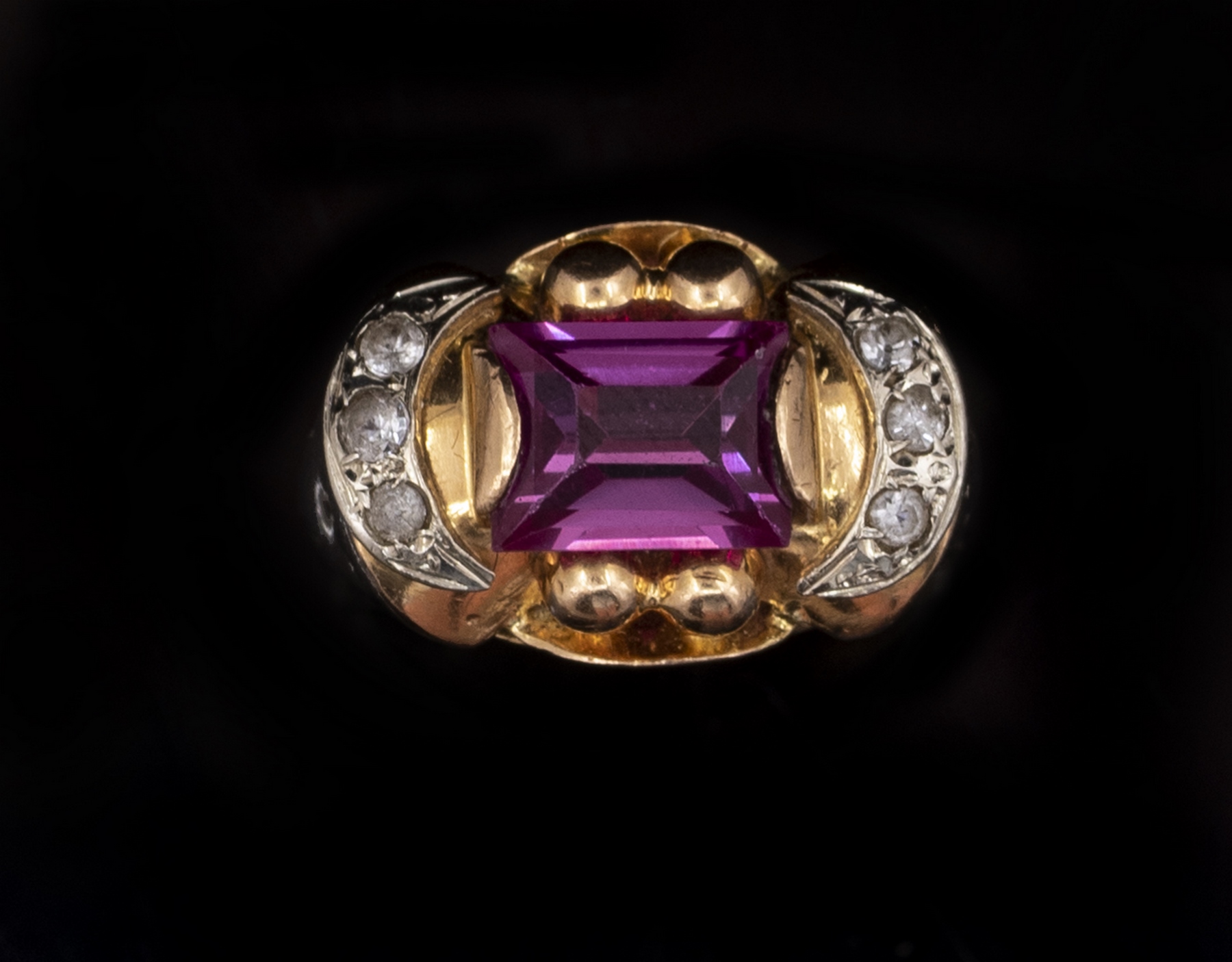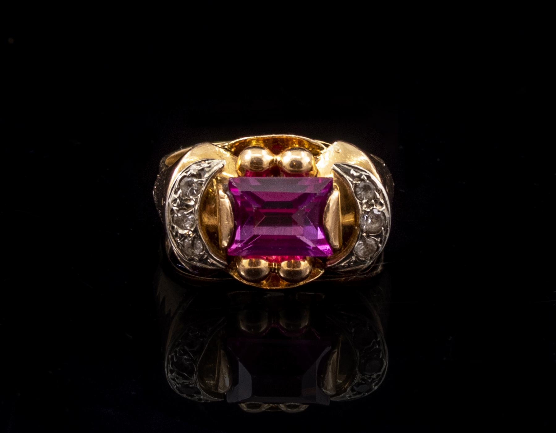 טבעת זהב, אבן אדומה ואבנים שקופות