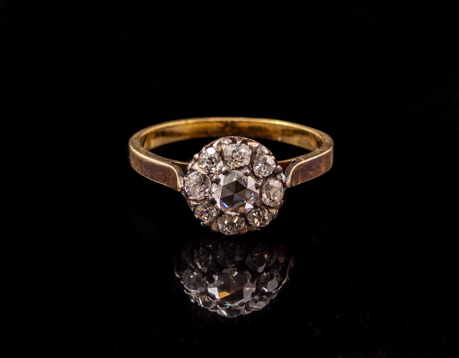טבעת זהב 18K. משובצת דיאמנטים. מידה: 6.5 US, משקל: 2.5 גרם. לא חתומה, זהב נבדק.