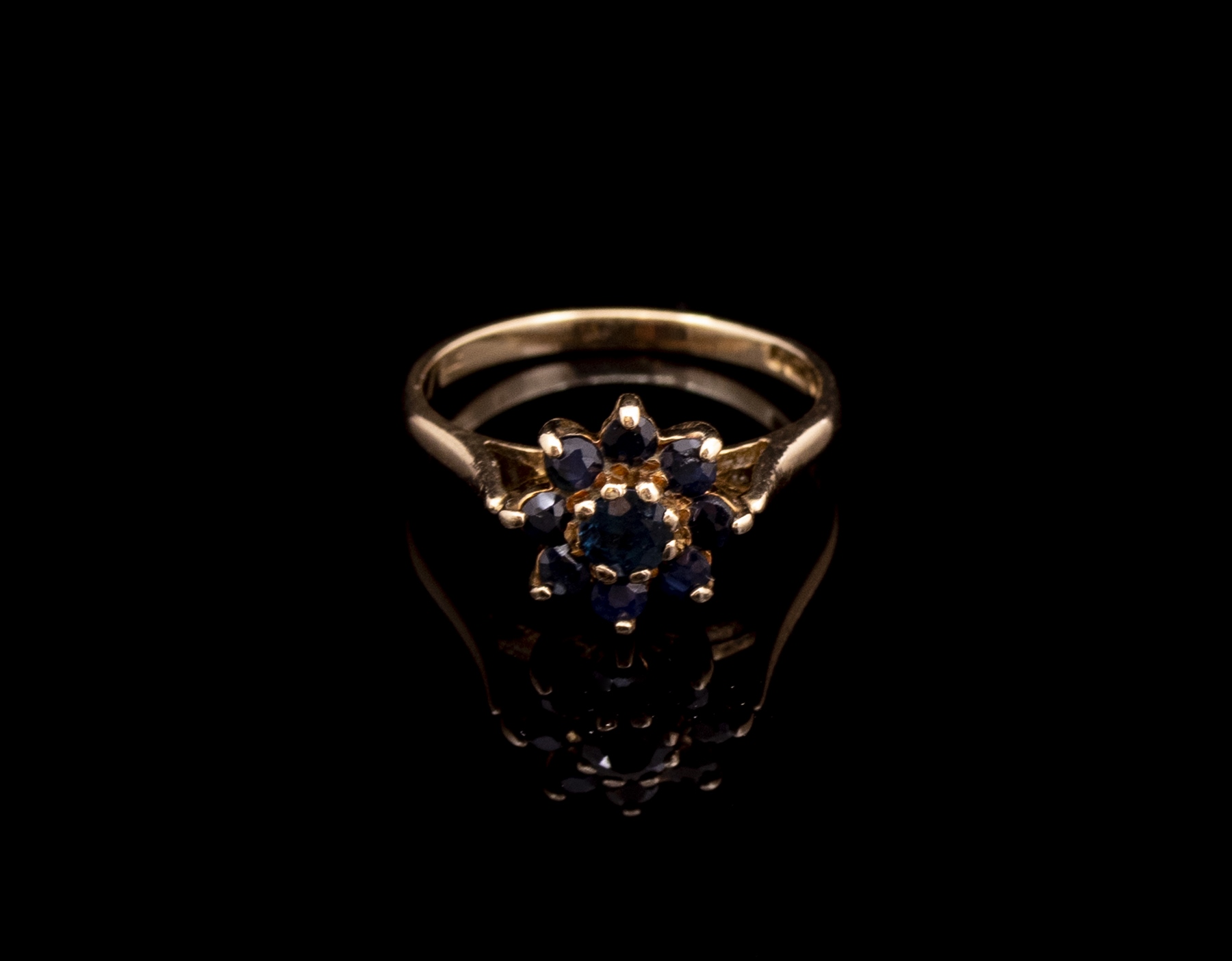 9K gold ring set with spinels. Size: US 5 1/4. Weight: 2.1 grams. Hallmarked.