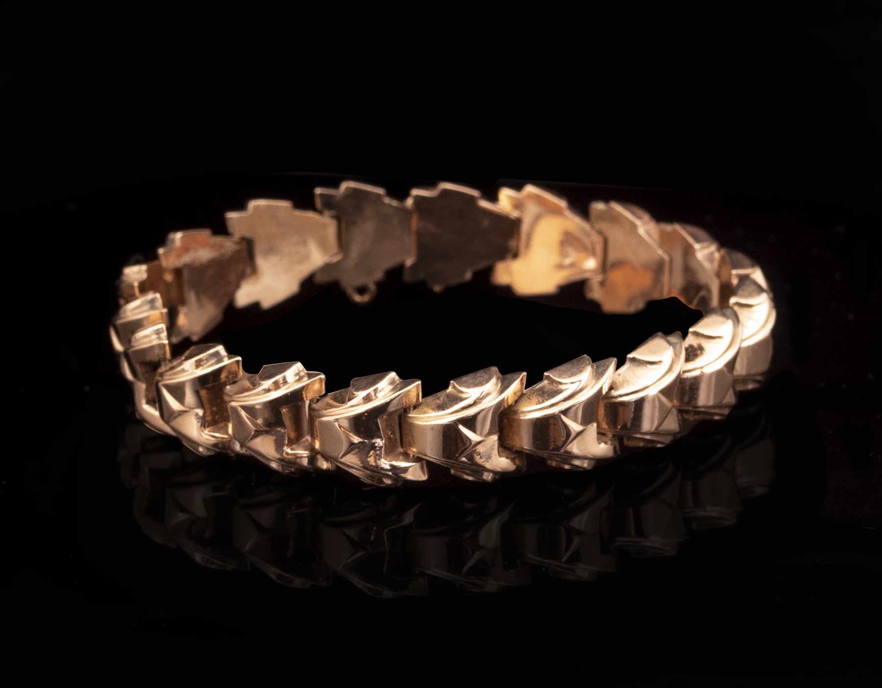 14k gold bracelet. Length: 19 cm, width: 11 mm, weight: 18.2 grams. Hallmarked