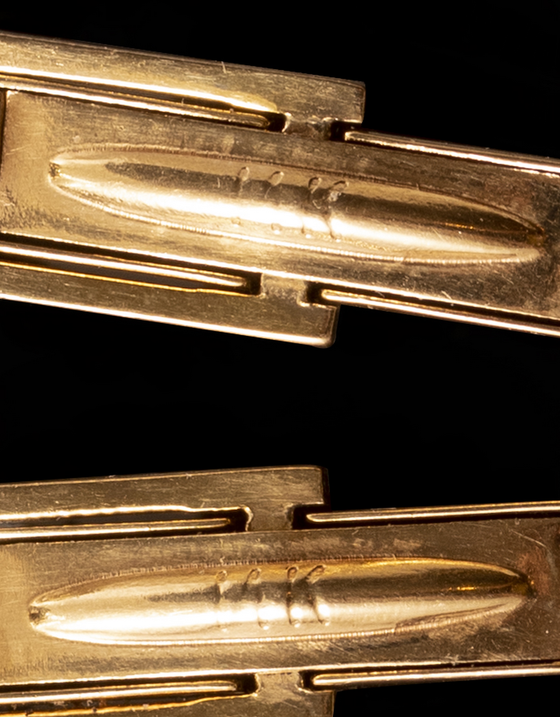 זוג חפתים מזהב 14K. בצורת חבל. מידות: 24X10 מ“מ. משקל: 13 גרם. חתומים. נקנו בחנות טיפאני.