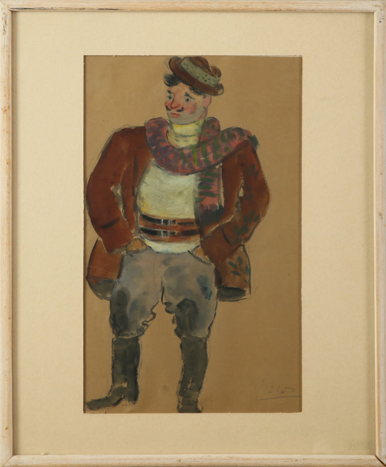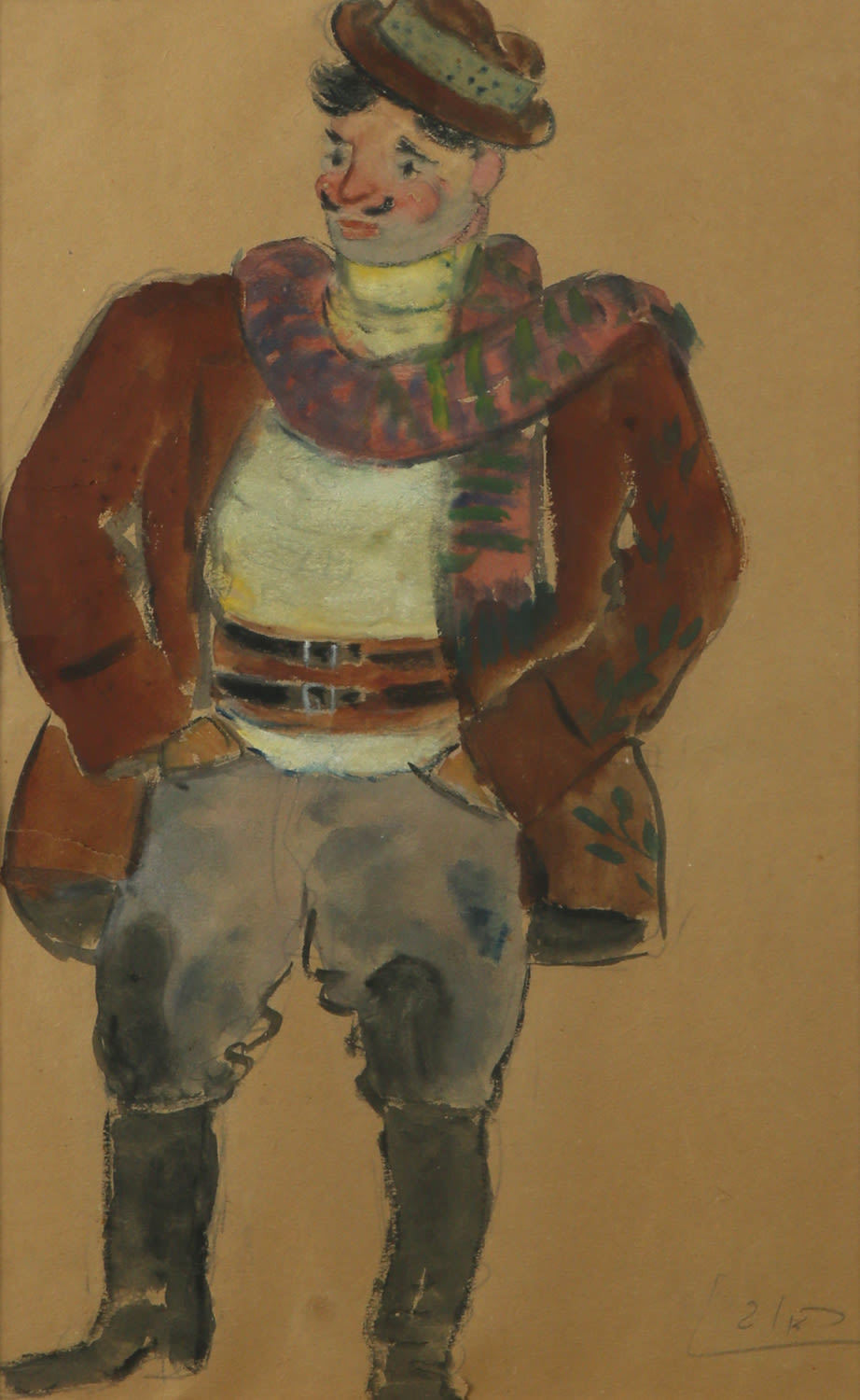 לוט 2 ציורים: דמויות לתיאטרון, שמן וגואש על נייר, 40×24 ס"מ כ״א, חתום. מקוריות הציורים אושרה ע״י גב’ כרמלה רובין, בית ראובן, תל אביב.