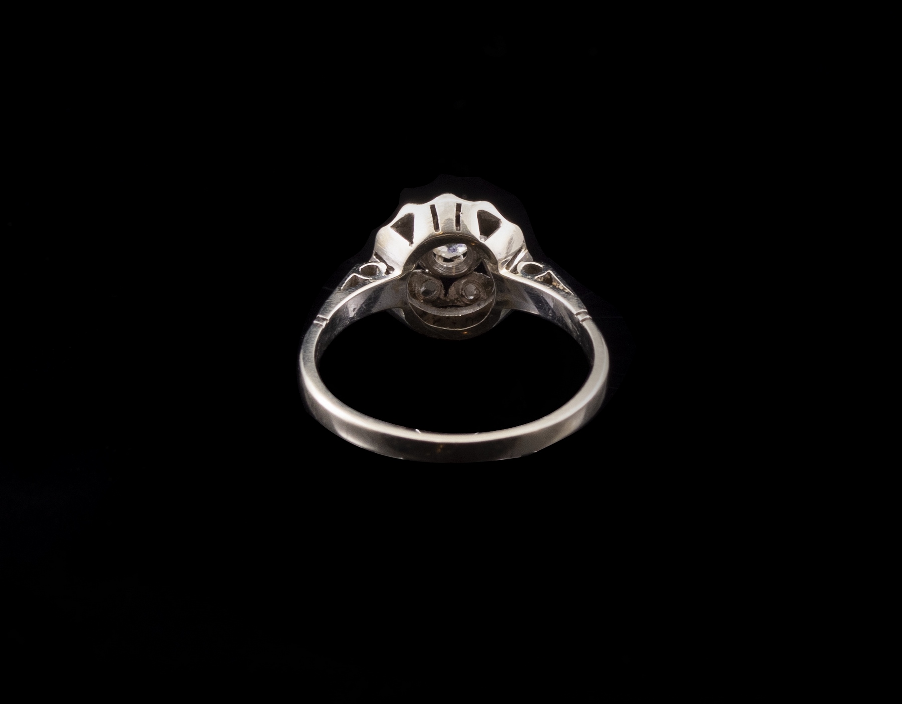 טבעת זהב לבן 18K משובצת דיאמנטים. מידה: 8 US, משקל: 3.5 גרם. חותמת שחוקה, הזהב נבדק.