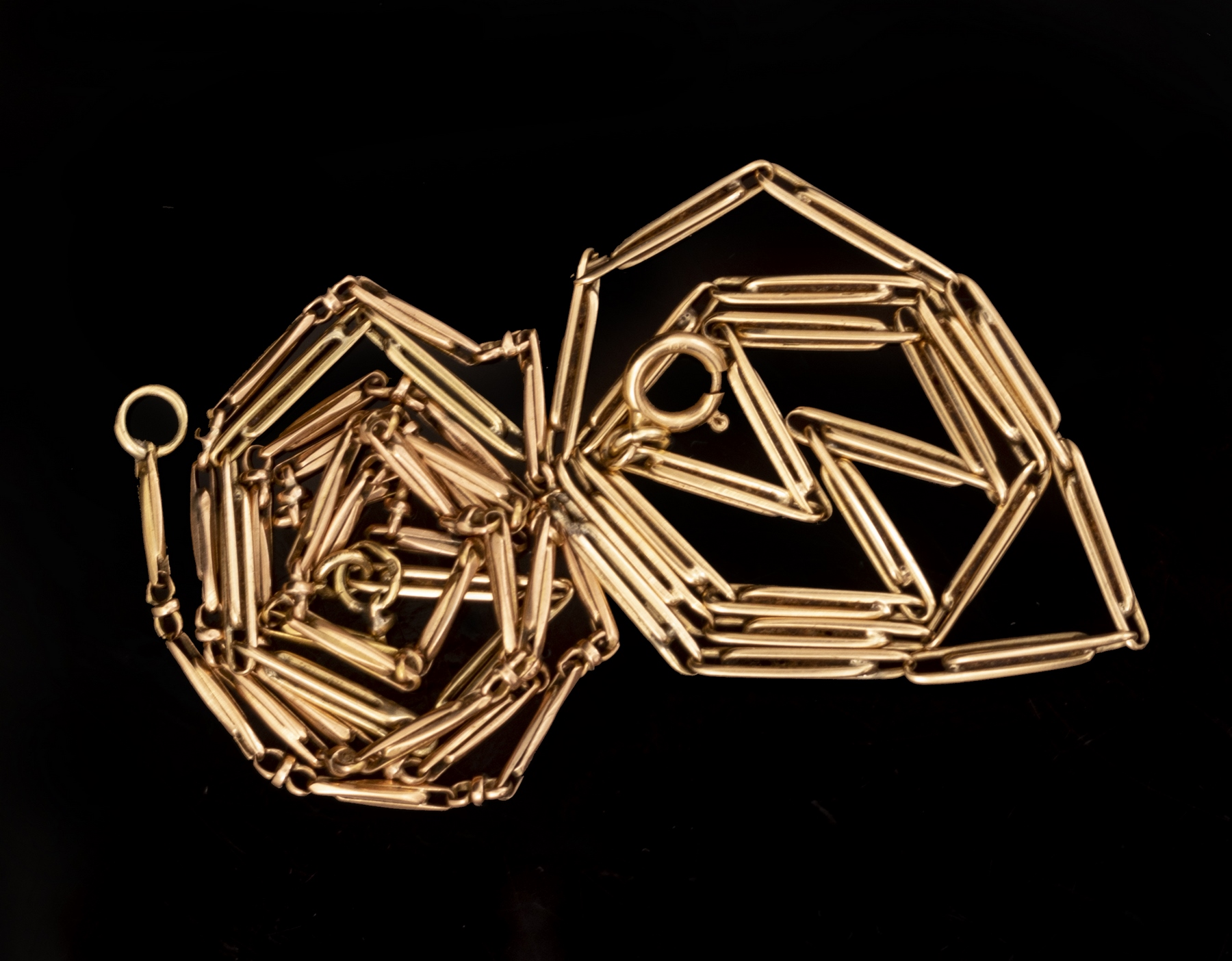 לוט חלקי שרשראות מזהב 14K, עשויות חוליות. אורך: 27-40 ס“מ. משקל: 9.4 גרם. זהב נבדק.