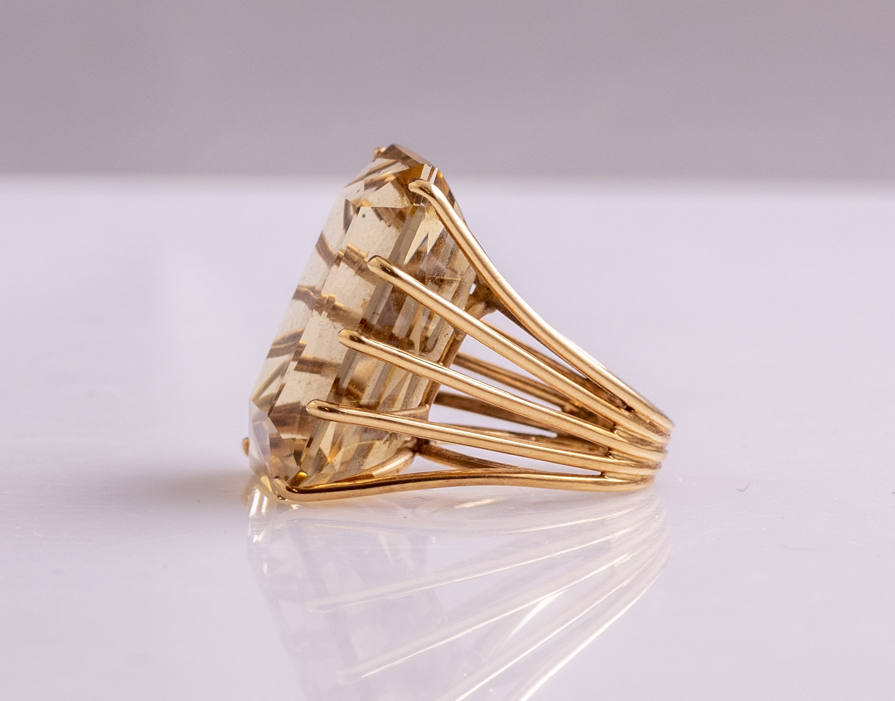 14K gold ring set with large smoky quartz (29X21 cm). Size: US 5 3/4, total weight: 21.8 grams. Apparently unmarked, gold tested.