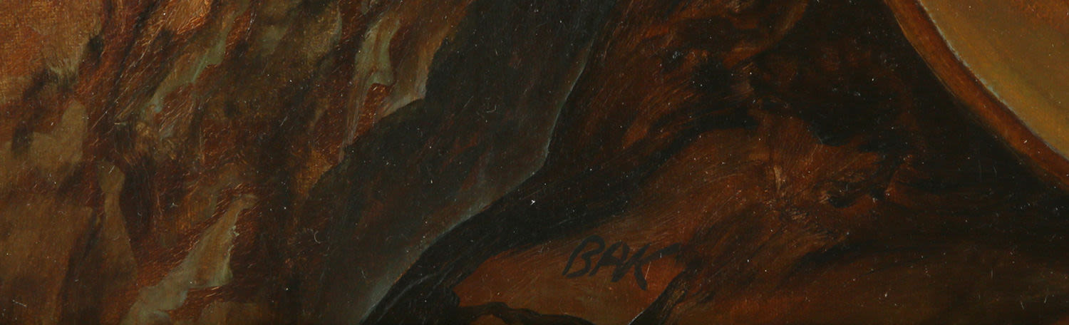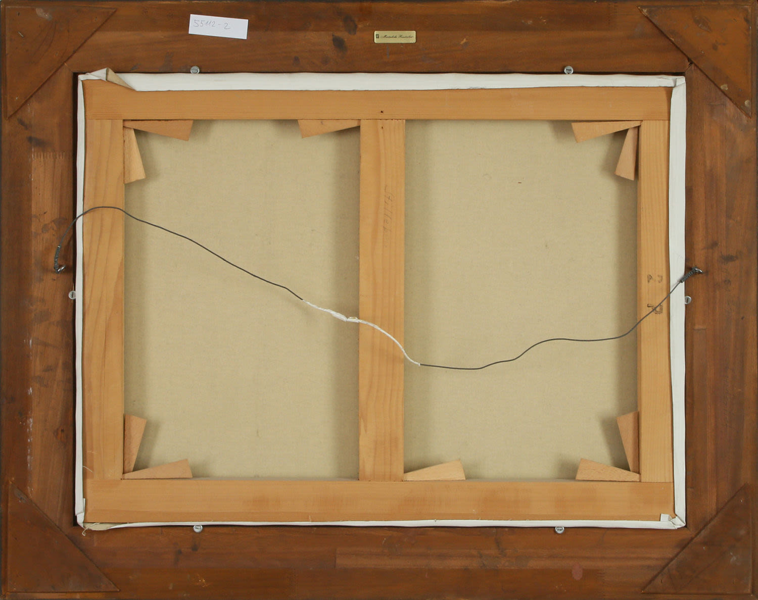 אגסים בנוף, שמן על בד, 54×73 ס"מ, חתום.