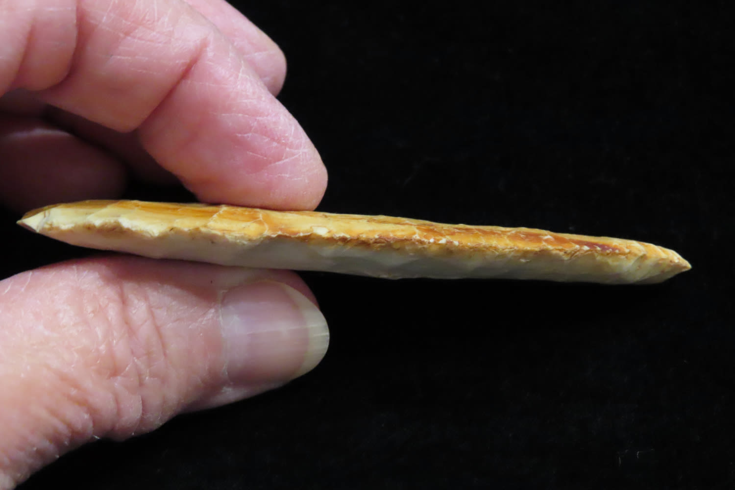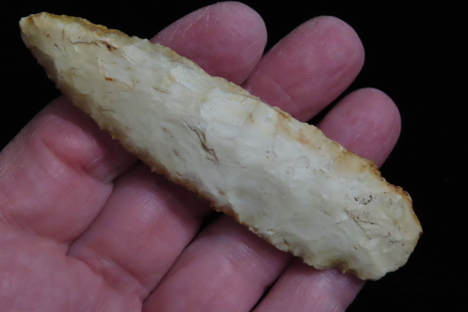 3 3/8″ Merkle with great creek stain found by Brandon Hunt in Greene Co, Illinois.