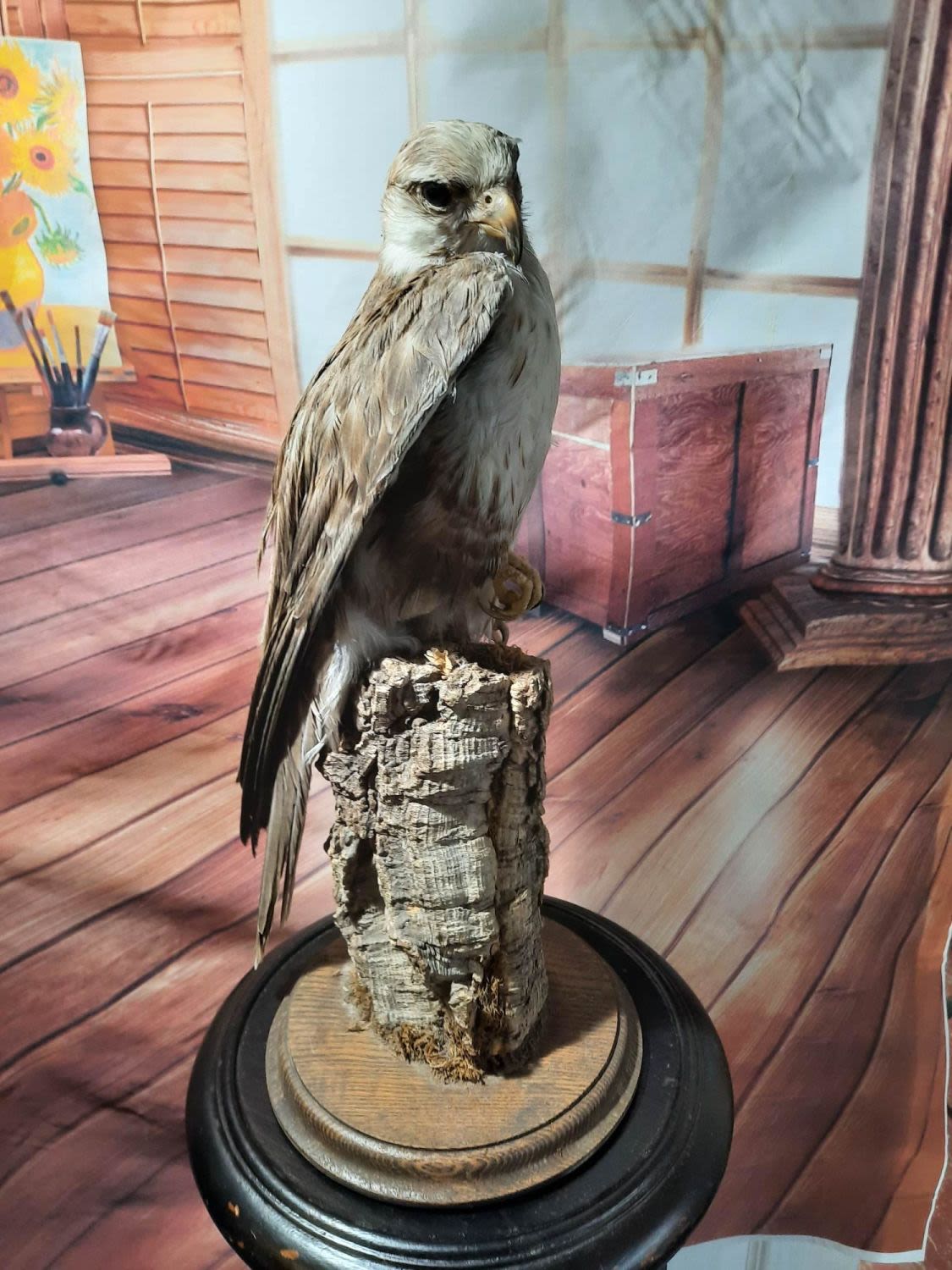 Stunning antique taxidermy hawk on perch