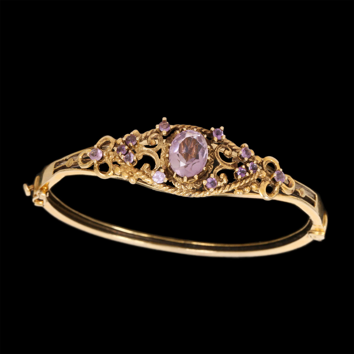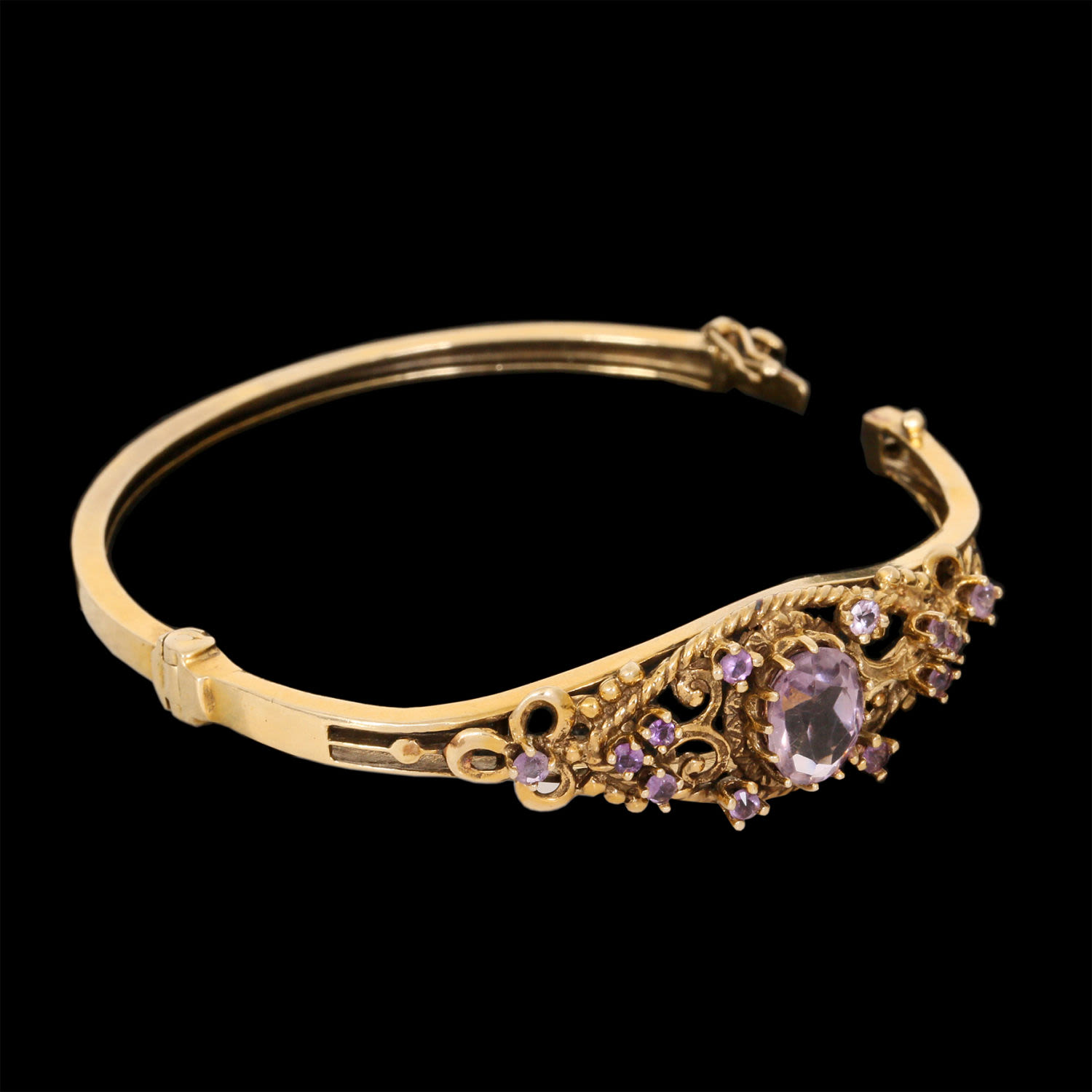 Set with amethyst stones.