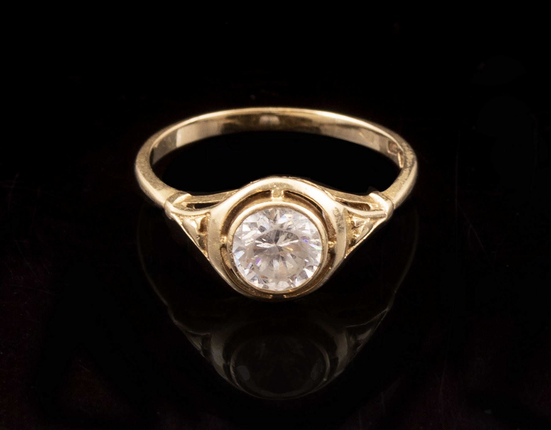 טבעת זהב 14K משובצת יהלום בחיתוך אלט-שליף במשקל של כ-70 נק'. מידה: 3/4 6 US, משקל: 2.1 גרם. חתומה.